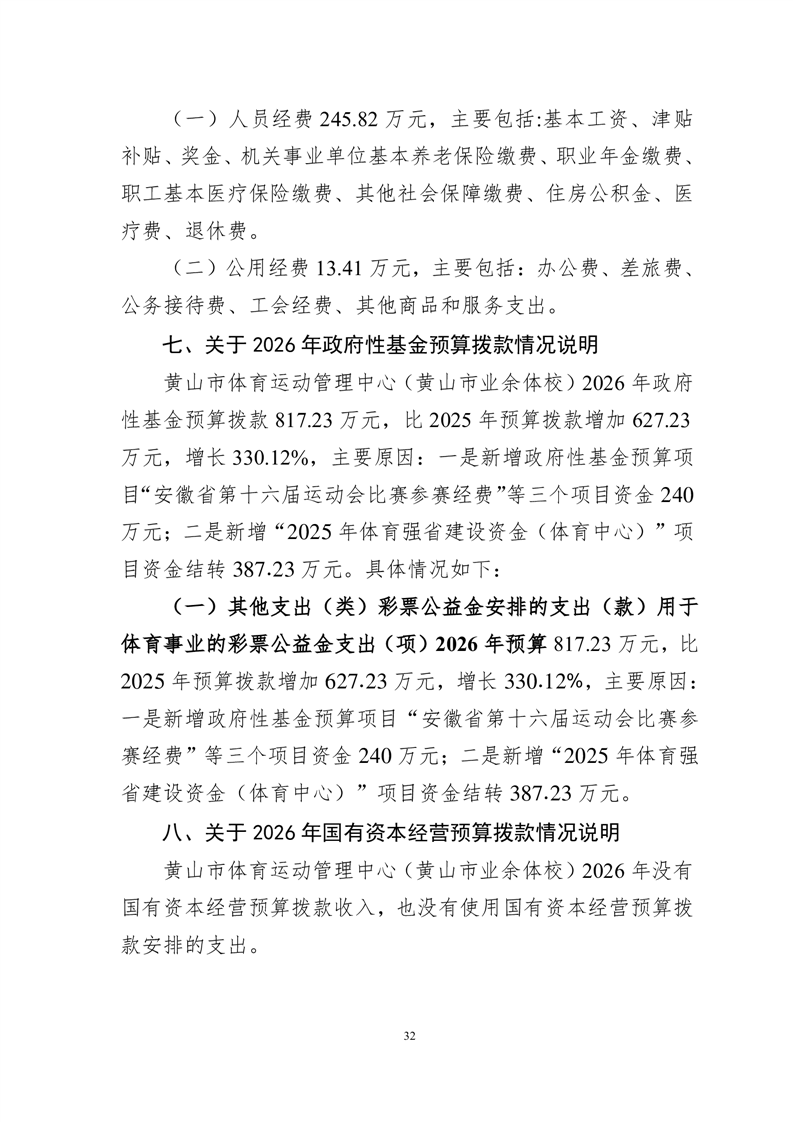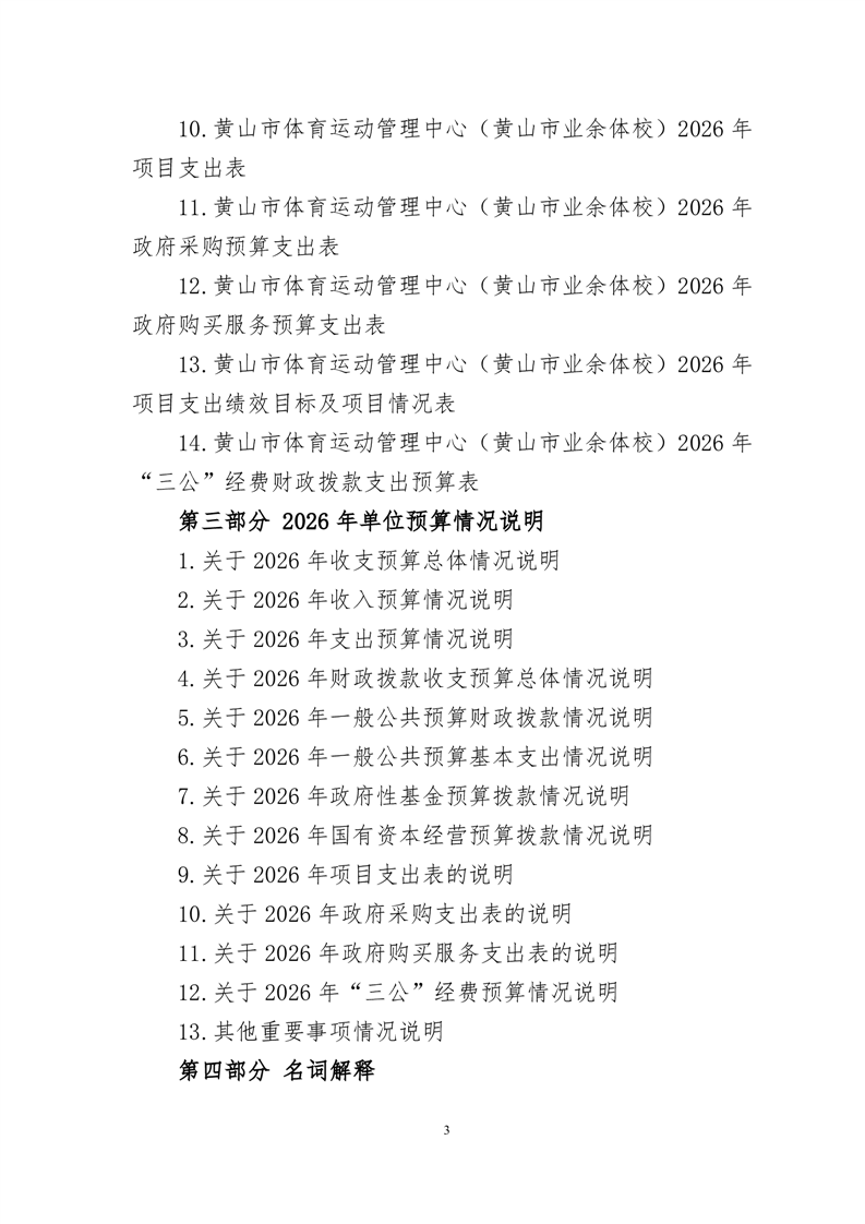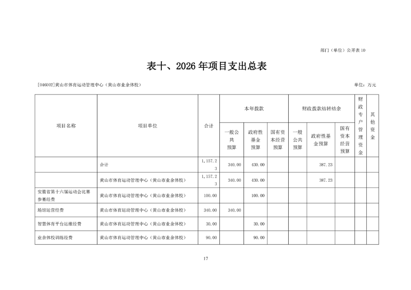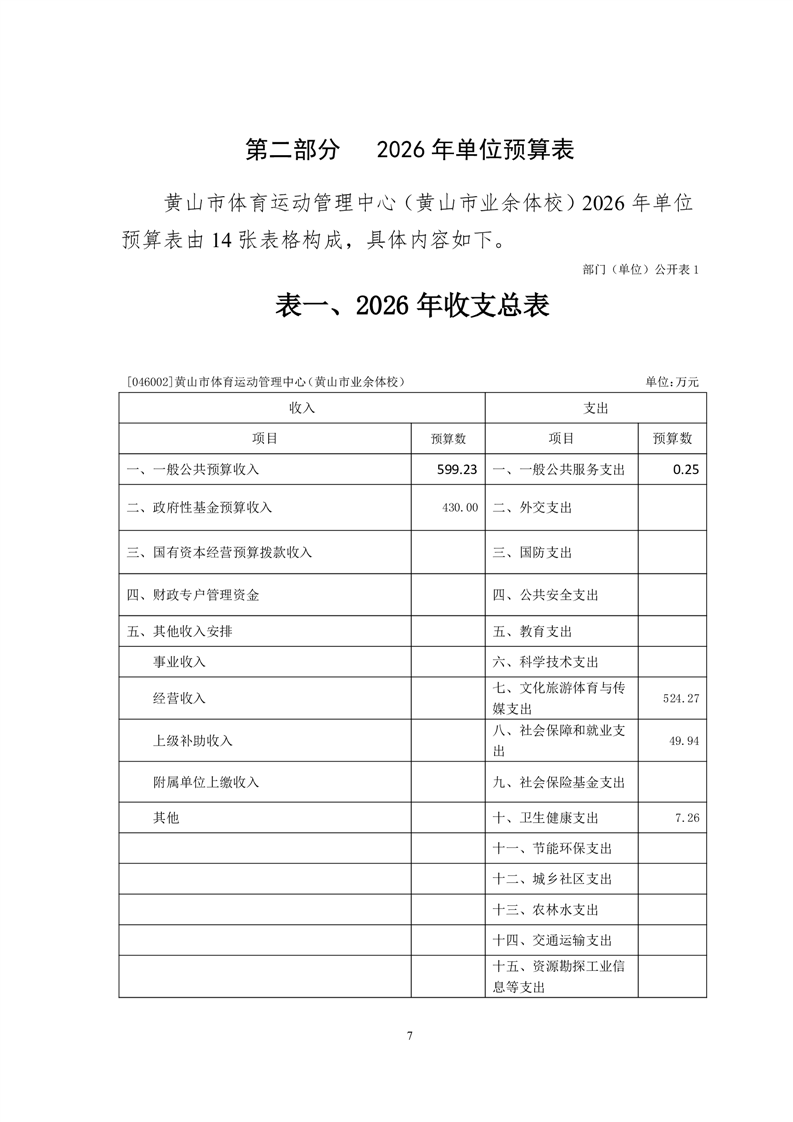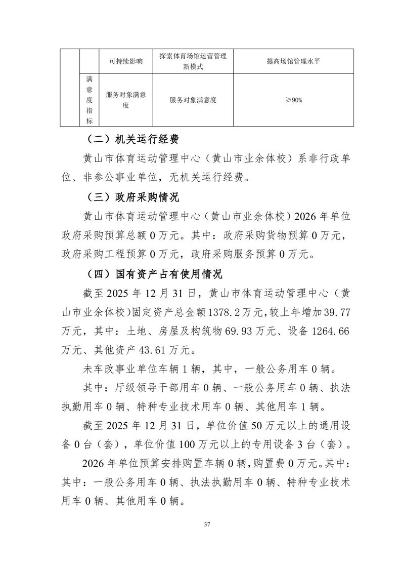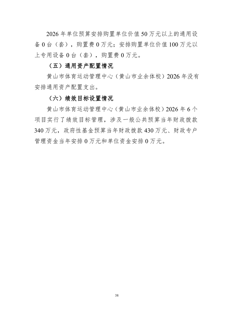 黄山市体育运动管理中心(黄山市业余体校)2026年单位预算