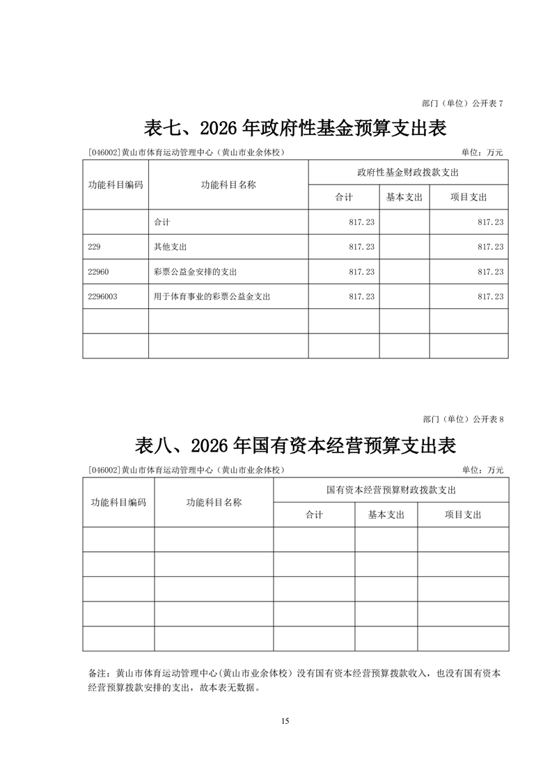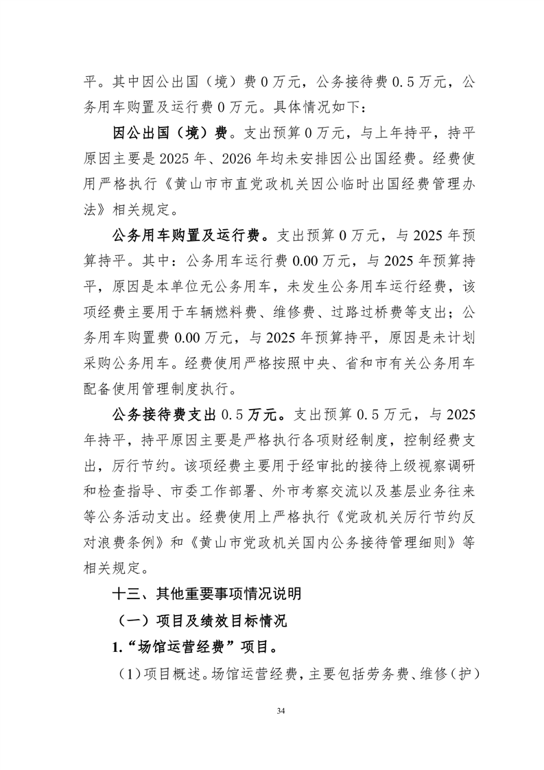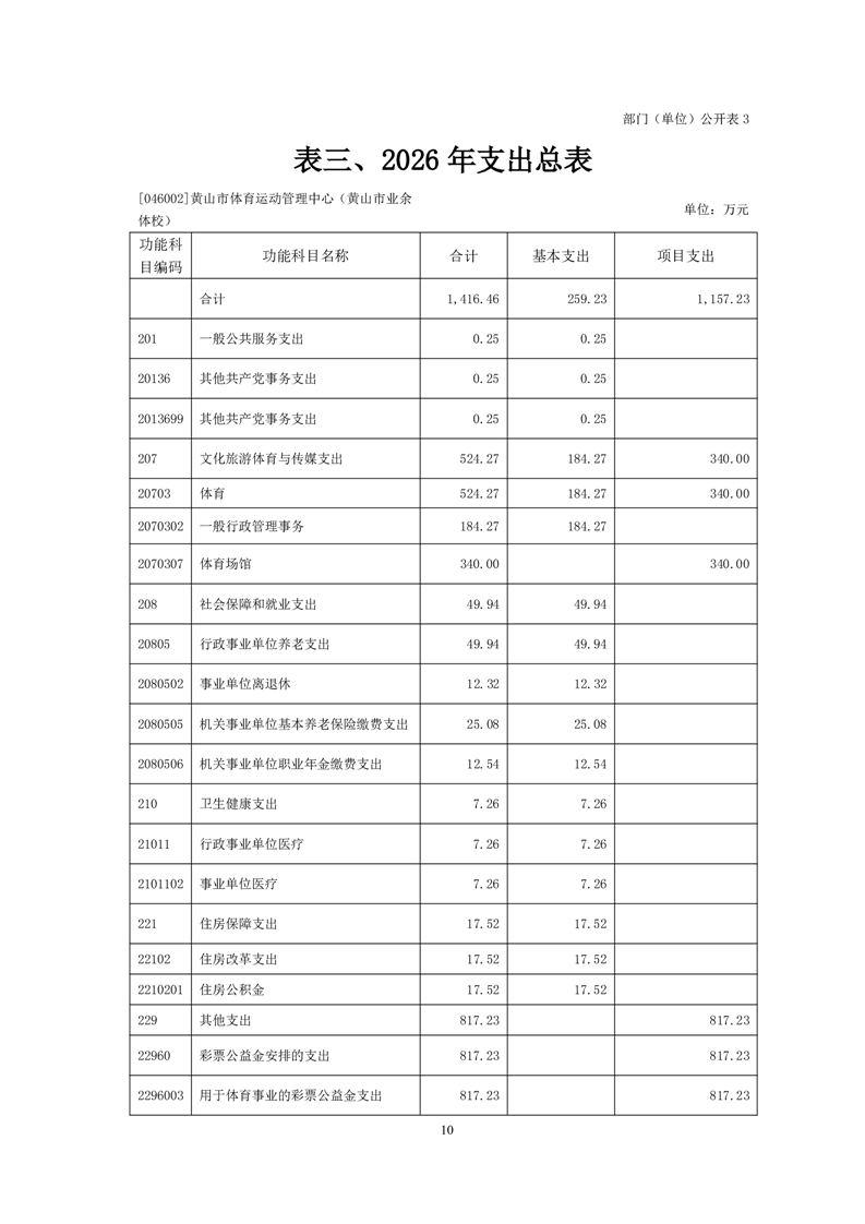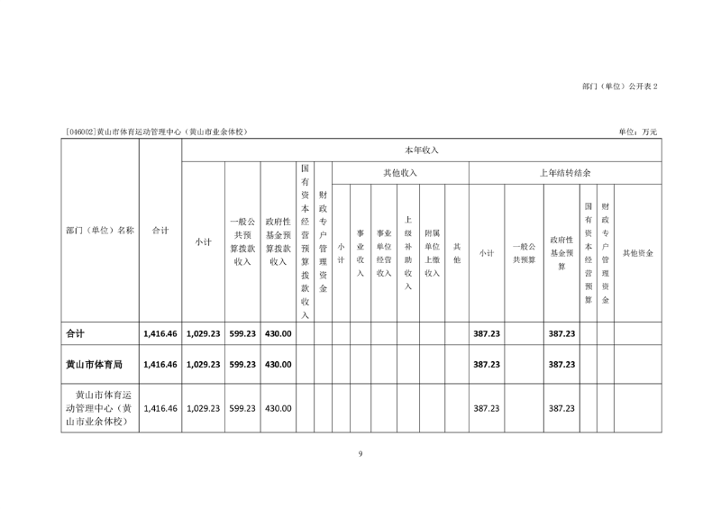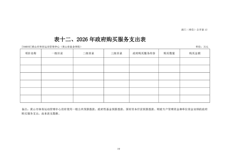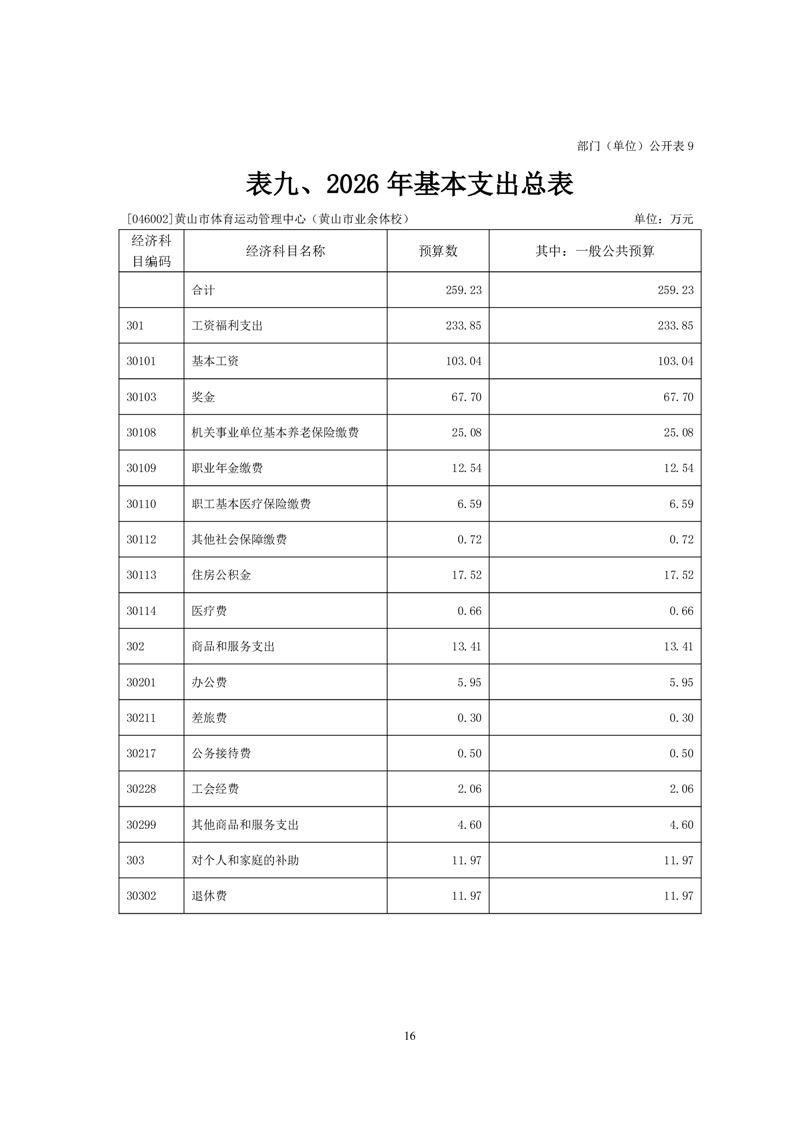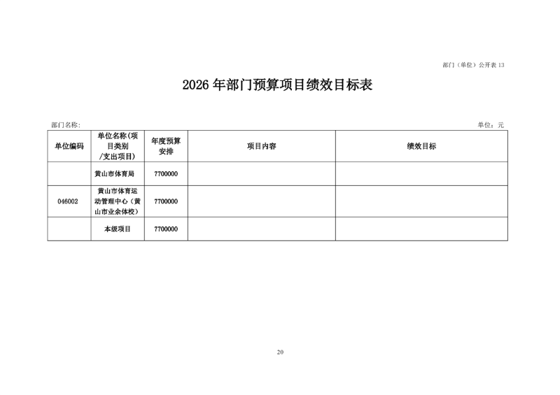黄山市体育运动管理中心(黄山市业余体校)2026年单位预算