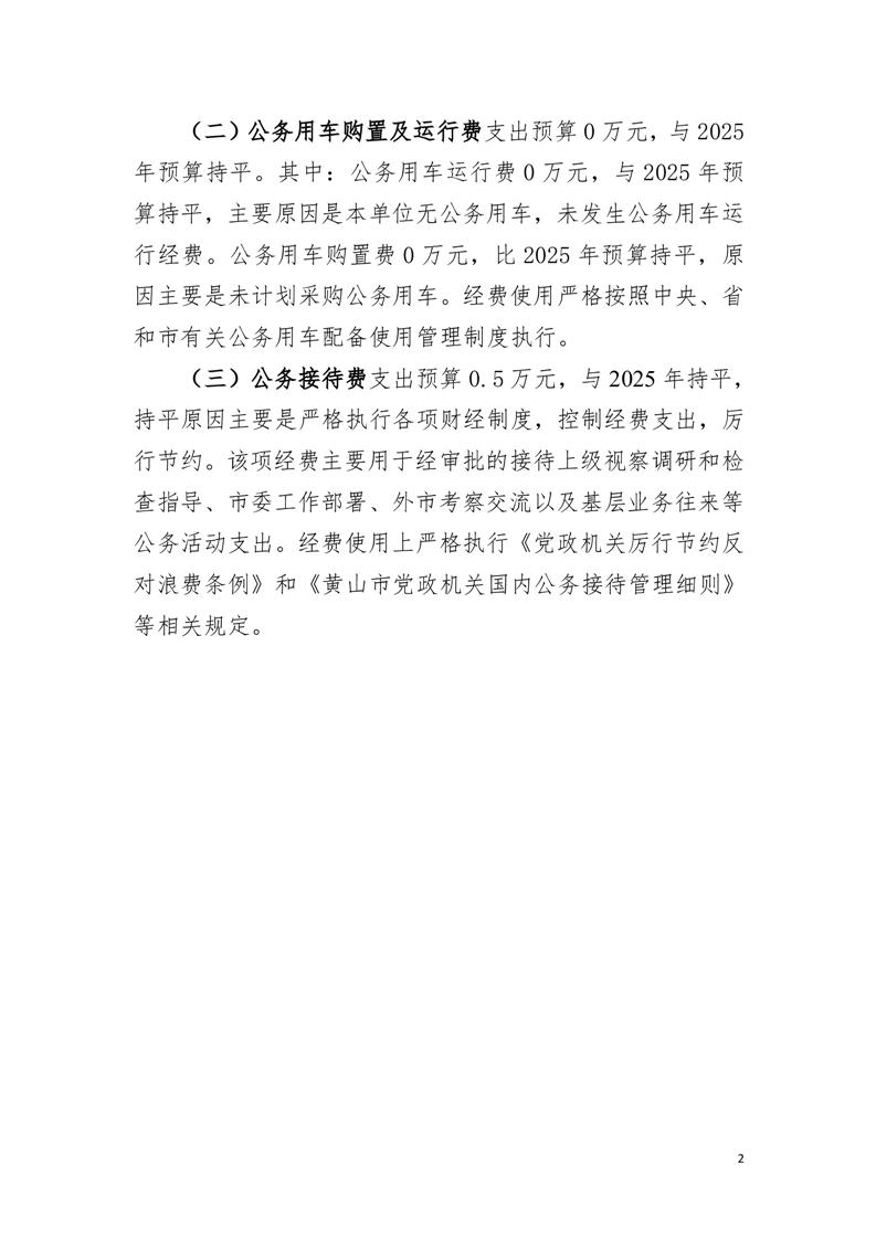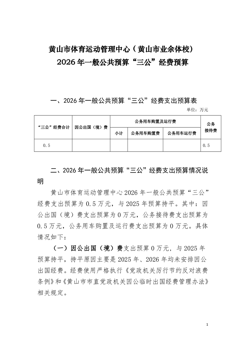 黄山市体育运动管理中心(黄山市业余体校)2026年一般公共预算“三公”经费预算