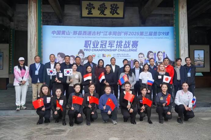 10月24日上午,由中国台球协会、安徽省社会体育指导中心指导,黟县人民政府主办的中国黄山·黟县西递古村“江丰同创”杯2025第三届普尔9球职业冠军挑战赛在黟县西递村开赛。