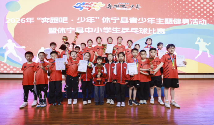 4月21-22日,2026年“奔跑吧·少年”休宁县青少年主题健身活动暨休宁县中小学生乒乓球比赛在黄山新教育学校圆满落幕。